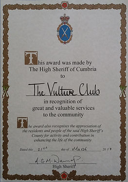 About Us The Vulture Club was formed by a group of local West Cumbrian volunteers who through their own working experience and participation within the field of addiction and recovery, felt that there was a real need to provide contextual support to people who were trying to recover from substance addiction. It is very hard to stop taking substances, its even harder to stay off them - Vulture Club recognize the importance of a maintained recovery. The use of art and cultural pursuits as diversionary activities prompted the name of Culture Vultures that quickly became Vulture Club. Our combined experience recognized a need for assistance and support for individuals with emotional issues who were having significant difficulty engaging in the larger community, when often isolated in a vulnerable and risky environment. We have experience with working with people whom have experienced emotional trauma affecting their mental health and participation in the community. We were lucky enough to win a prestigious award for our services to our community at an early stage of our development, we have since had 2 High Sheriff awards for work within the community. We play an active role with liaising with other support agencies and statutory services. We also provide advocacy and representation at benefit Tribunals. Our services are built around our members need not the other way round.